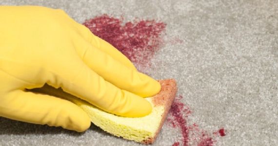 To remove carpet stains, simply blot the spot and dry working from the outside in, rinse thoroughly with clean water, then blot again. Never scrub the carpet, or you risk ruining the carpet fibers or letting the spill soak through to the carpet pad.
